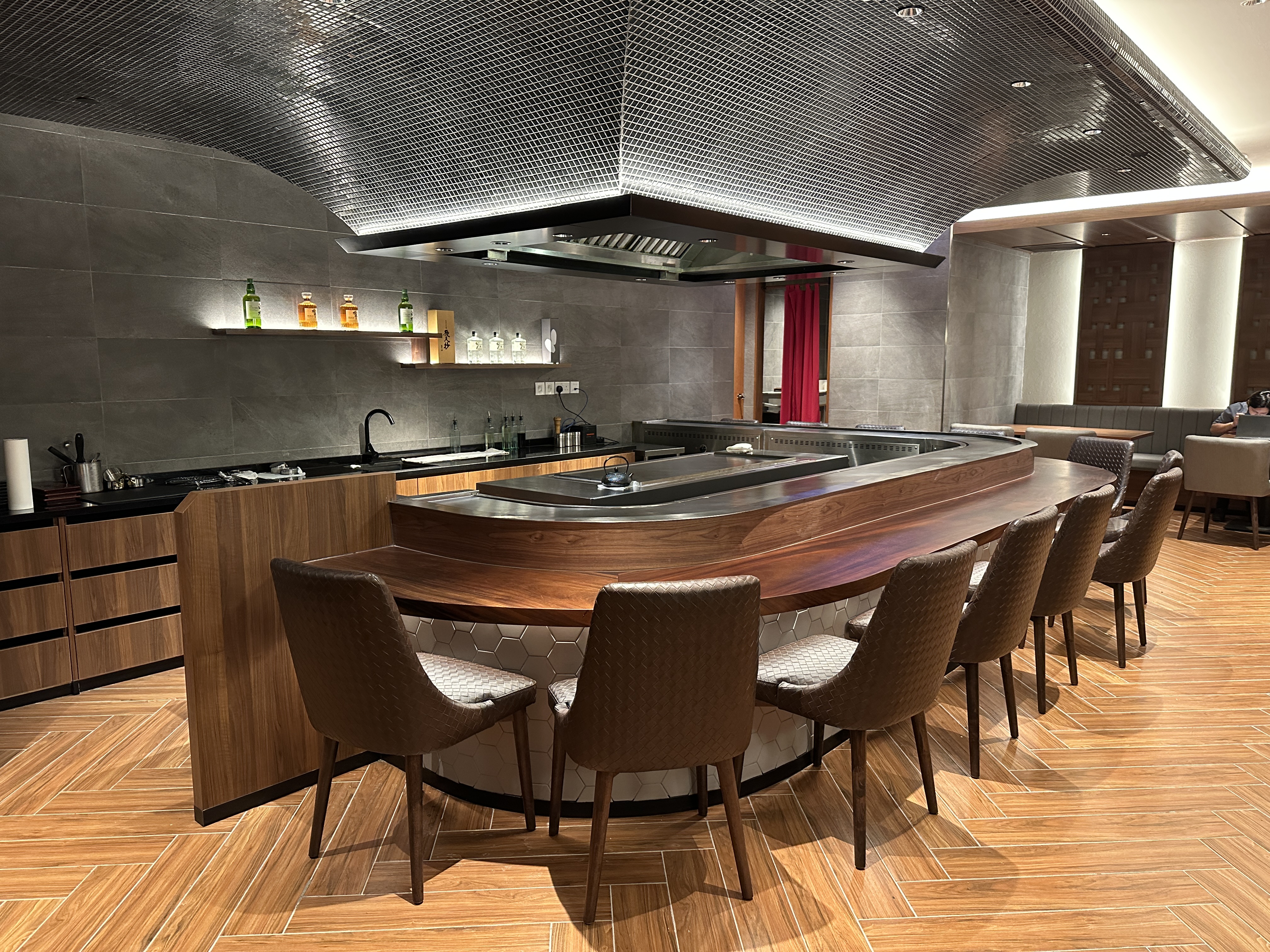 It offers an unusual ‘dual teppanyaki’ experience, where diners can request for seats at a live teppanyaki counter equipped with two teppans (iron plate grill). Instead of the usual single grill, there is a belt-style teppan that circles the dining table, so you can watch your food being cooked up close, while dramatic acts like setting wagyu beef on fire is done at the larger grill behind.