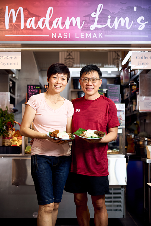 Despite the setback, the couple remains passionate about F&B. In February, they launched hawker stall Madam Lim’s Nasi Lemak – named after the lady boss – at Holland Drive Market & Food Centre. The joint serves nasi lemak with ayam berempah (spiced fried chicken), beef rendang and fried ikan kuning.