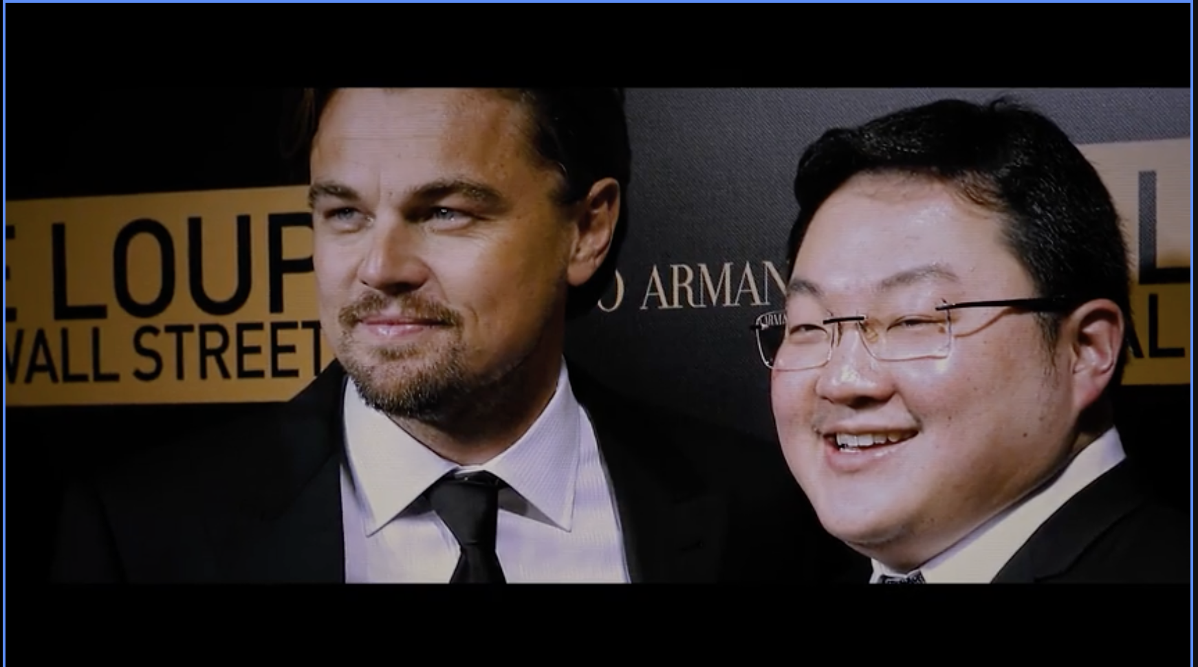 Man on the Run: Jho Low schmoozing with Leonardo DiCaprio at the premiere of The Wolf of Wall Street.