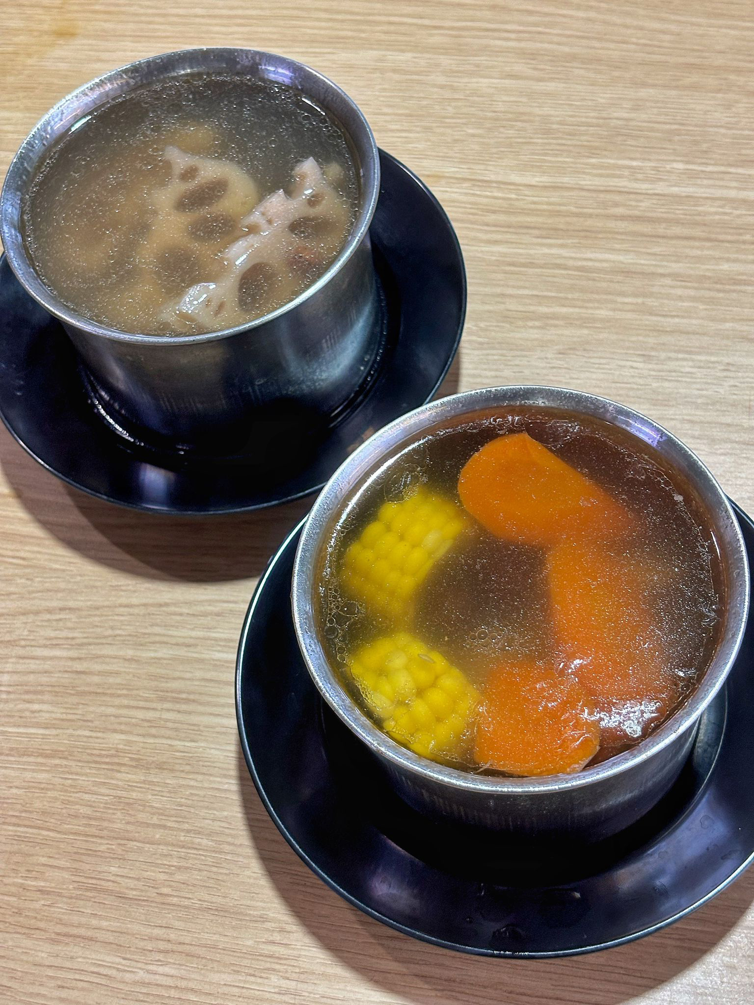 This simple but homey soup dish comes with a generous portion of pork ribs, corn and carrots. The broth is again light, but this time infused with the natural sweetness of corn. We prefer the richer lotus root soup, but this is a comforting dish nonetheless.