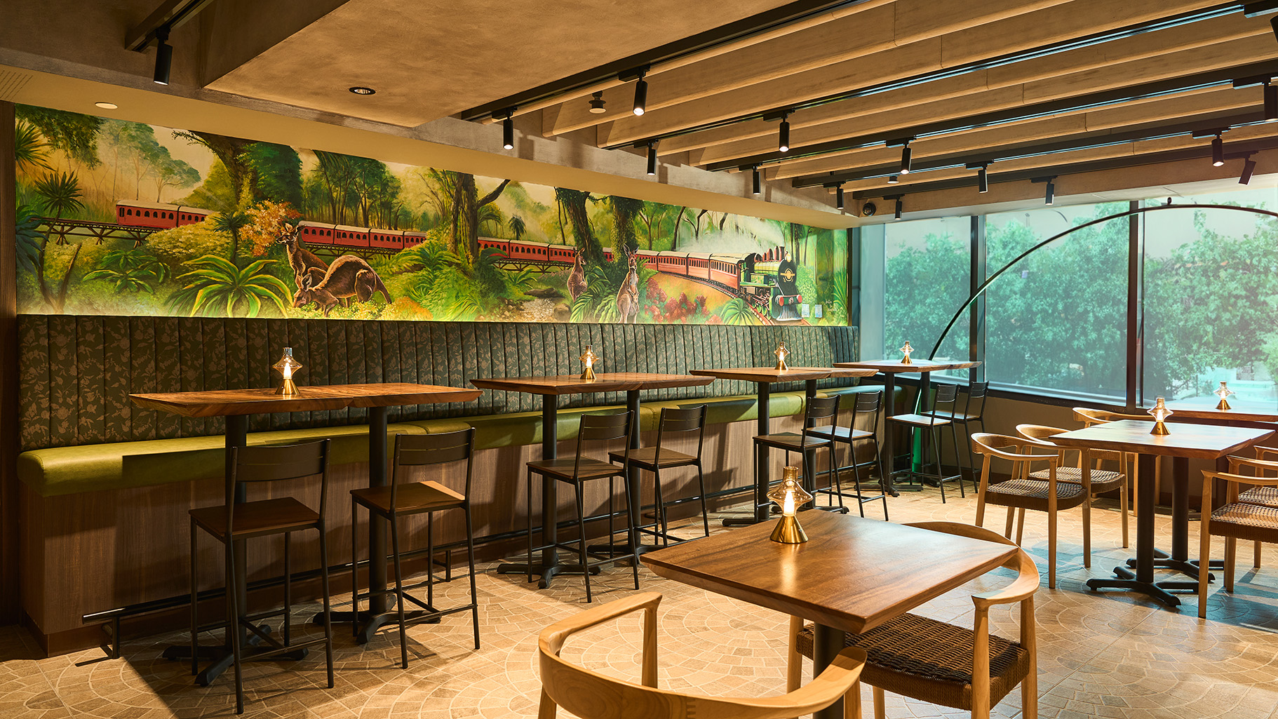 The cafe’s decor is inspired by a heritage steam train that runs in Mornington, a town near Melbourne. We’re told the team will be installing a handmade model train that will be chugging around the cafe’s ceiling soon – cute.