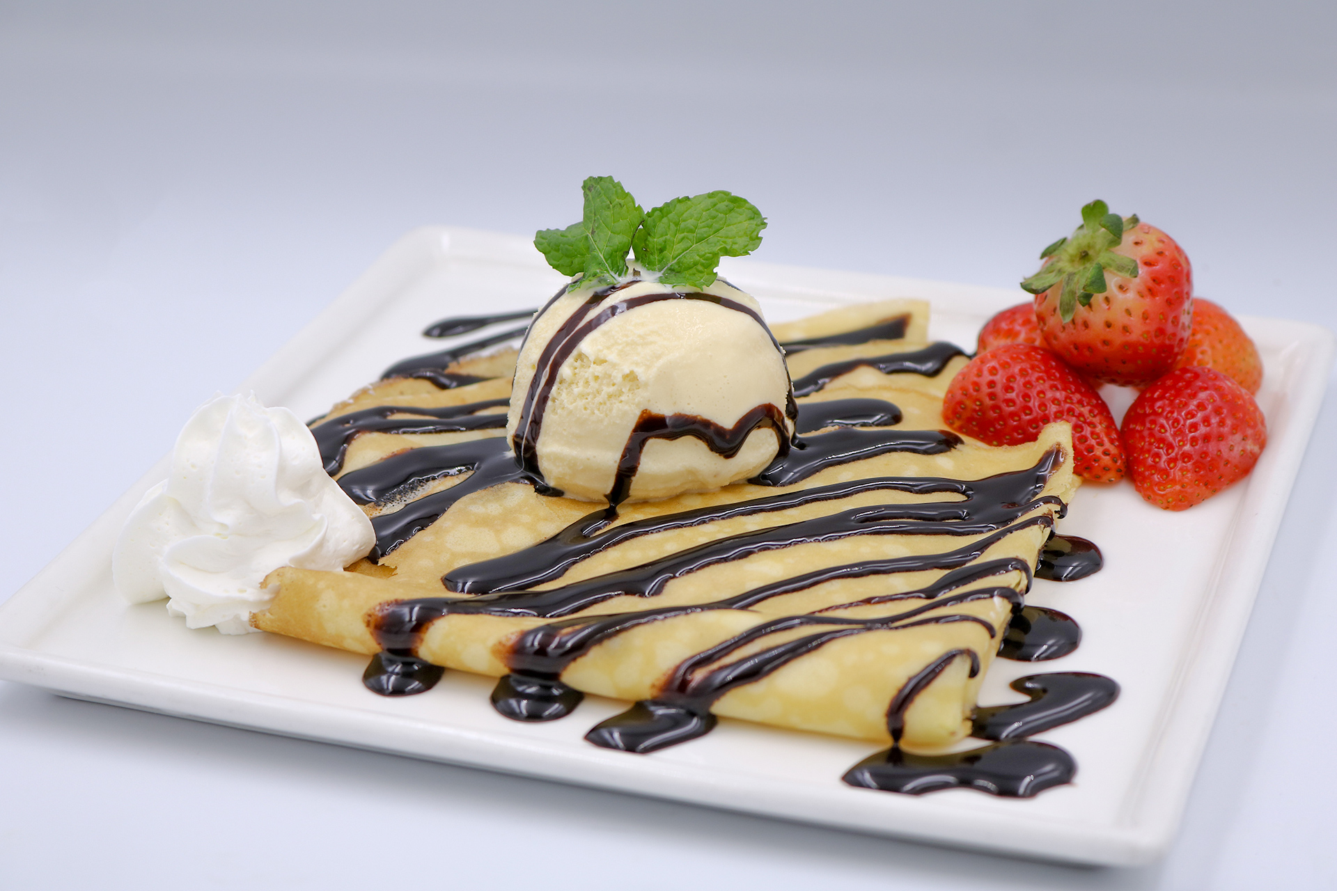 Current offerings include persimmon, strawberry and pear parfait, as well as strawberry crepe.