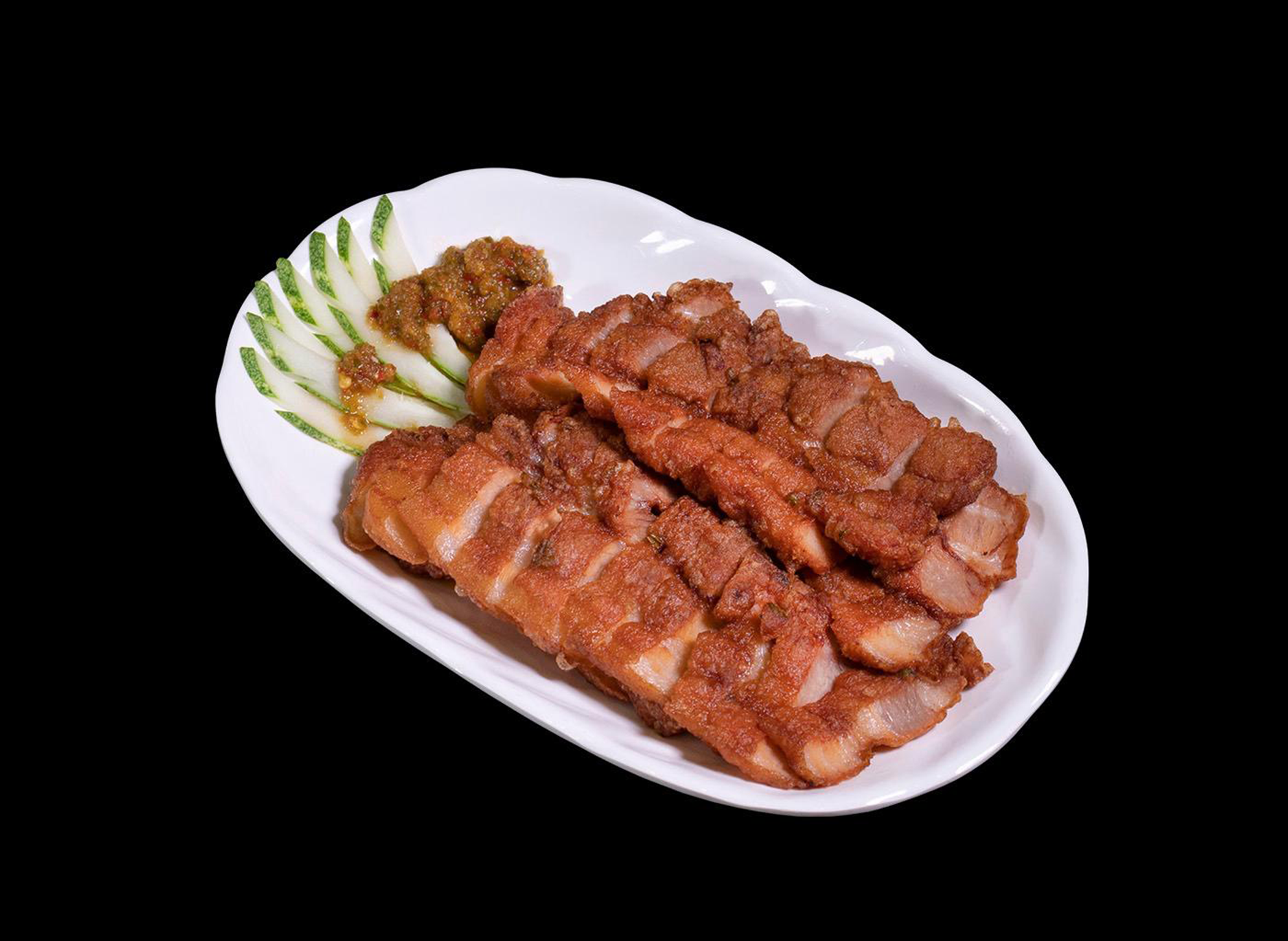 Deep Fried Pork Belly with Fermented Bean Paste Signature menu items include Creamy Salted Egg Chicken (from $13), JB Ah Fook Street Claypot Curry Fish Head ($25), Deep Fried Pork Belly with Fermented Bean Paste (from $13) and BBQ Stingray (from $18).