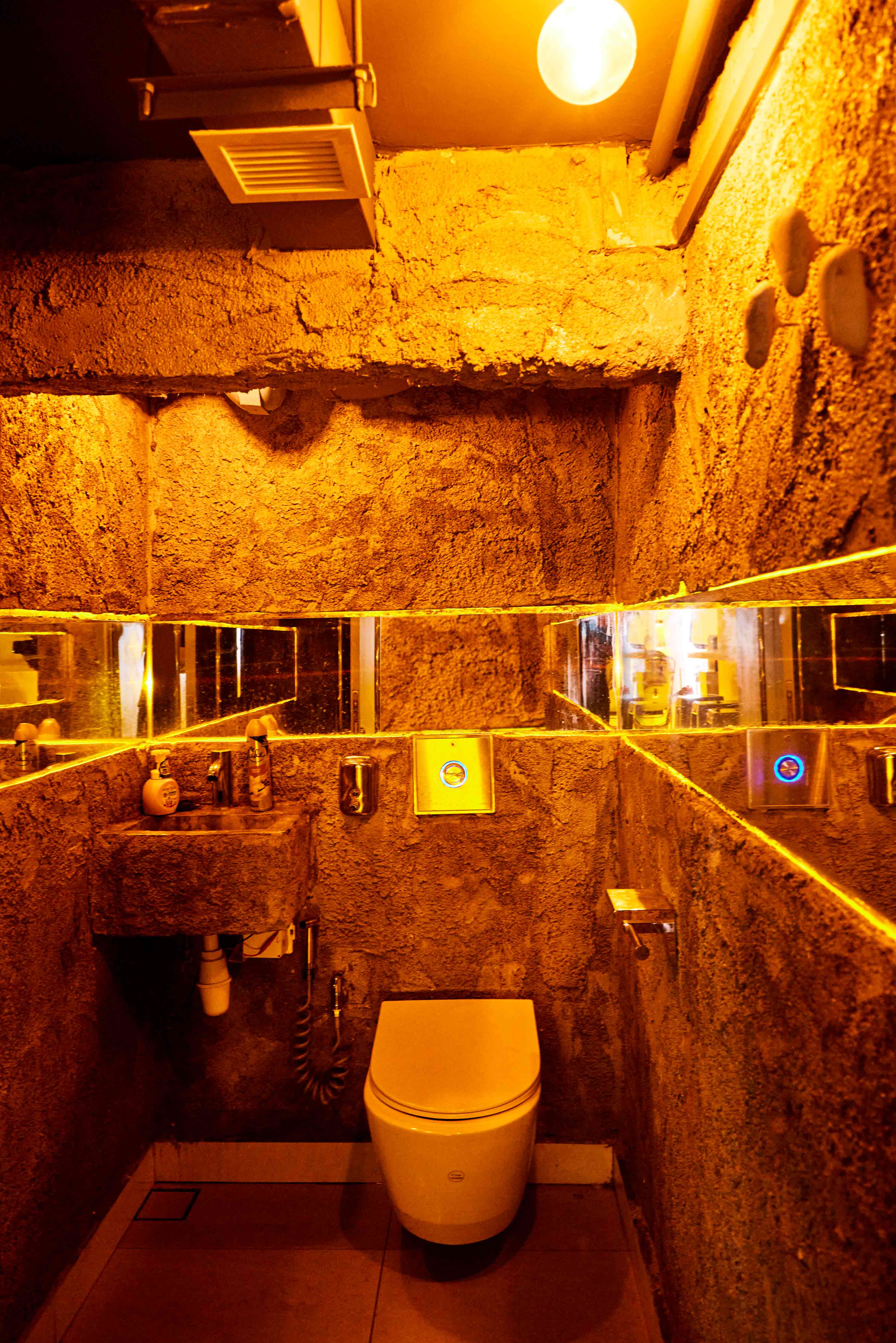 The cool washroom with unfinished concrete that looks like the walls of Batman’s cave is worth checking out too.