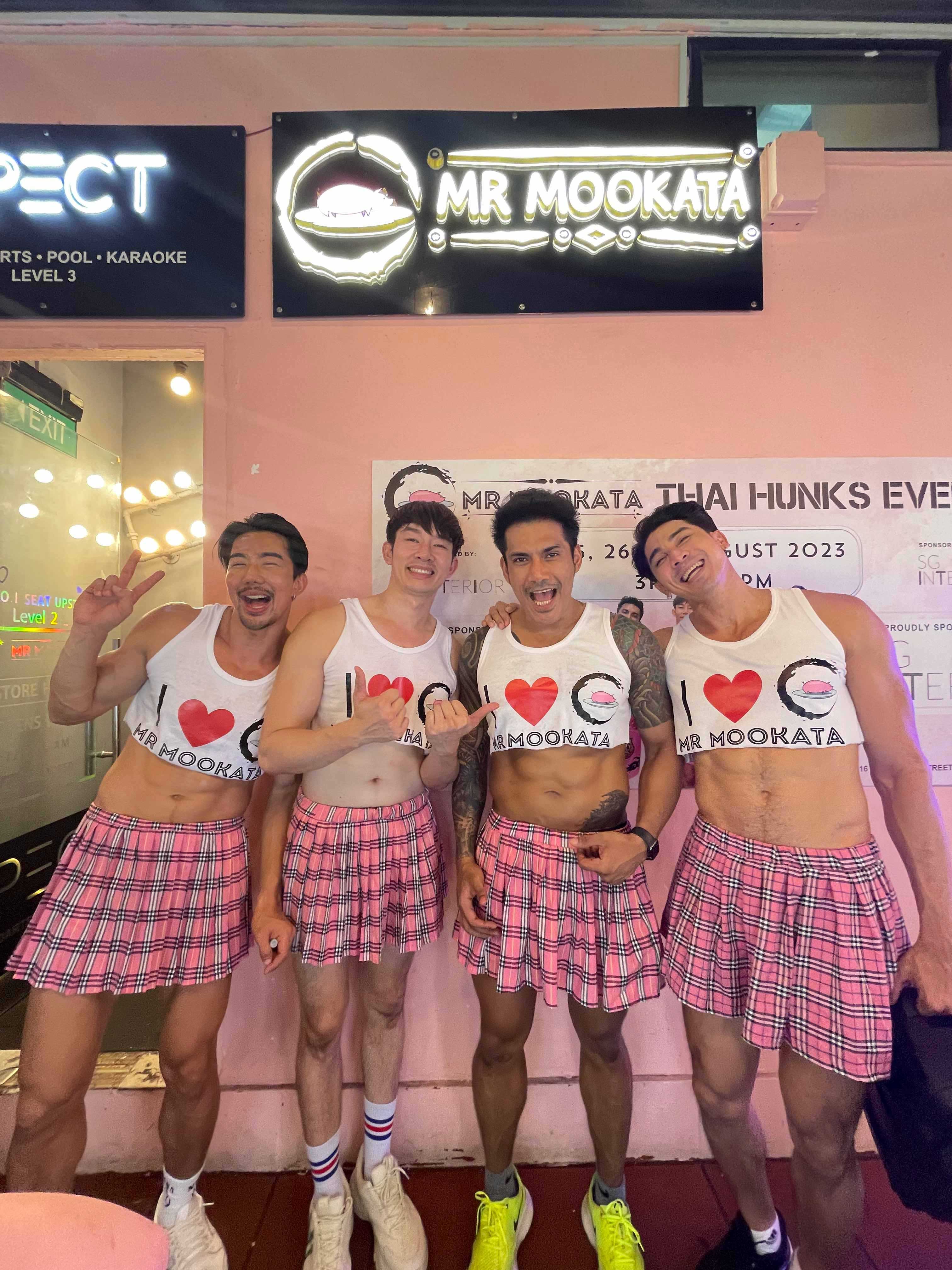 What will the Thai Hunks be wearing this time round? Last year, they donned XMM-esque fits, complete with ‘I love Mr Mookata’ cropped tops and plaid skirts. This time, Mr Mookata Plus’ manager says they plan to wear similar costumes, while the six new members will be wearing “more covered-up versions” of the iconic Staneemeehoi lingerie (see below).