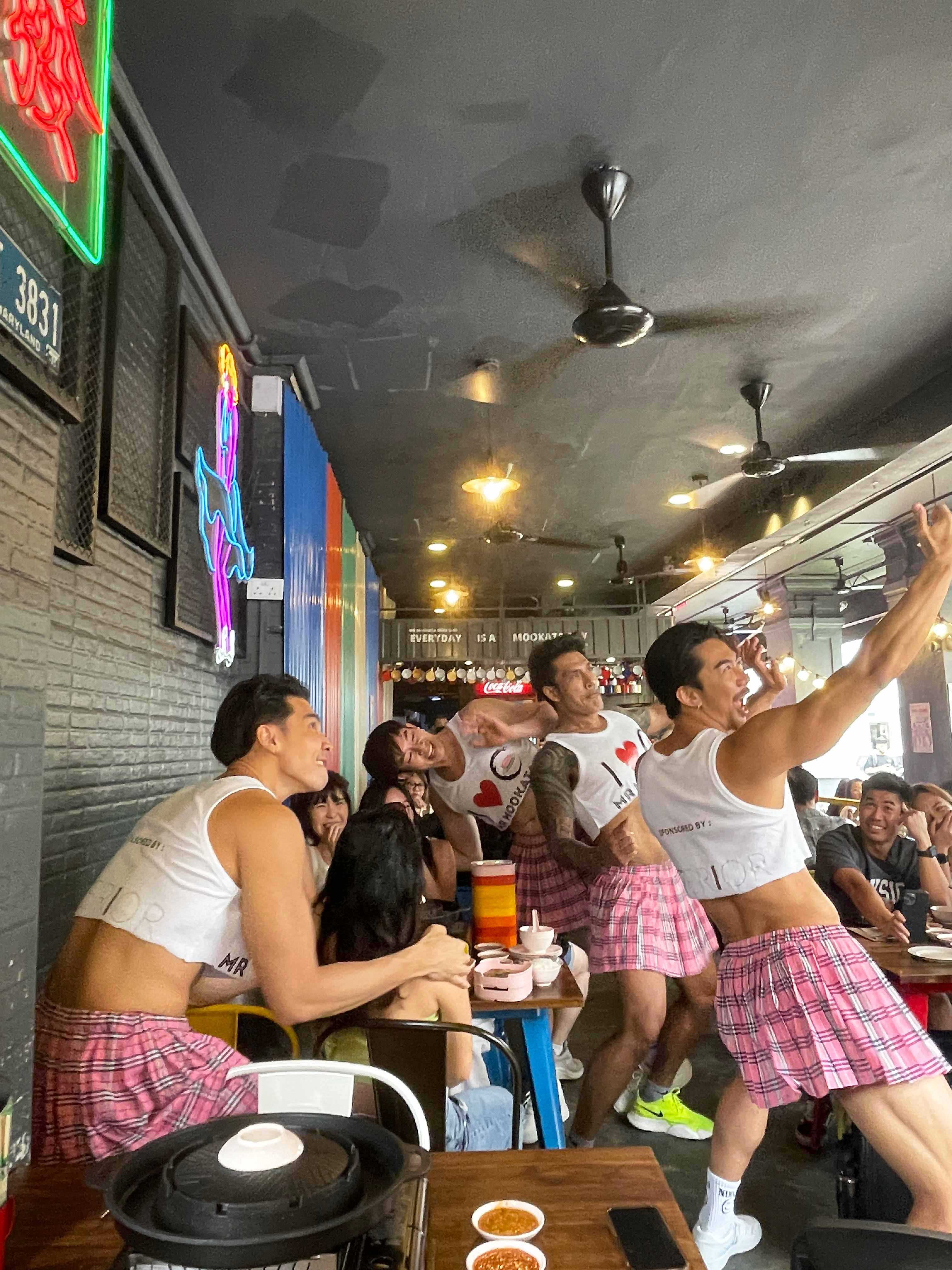 Serene Phoenix Park, a government-owned enclave dotted with charming colonial-era office blocks (some are heritage buildings) has an, ahem, interesting new tenant. Say hello to the Thai Hot Guys. The ripped, scantily-clad dudes are from Bangkok seafood restaurant Staneemeehoi and their claim to fame is their campy, eyebrow-raising performances. They caused quite a buzz in Singapore last year, bringing their provocative dance moves to Mr Mookata’s Bugis outlet. If you missed their shriek-filled antics - the four main hunks will be back from 3 to 5 May 2024. And then some. This time, they bring with them six new hotties to celebrate the opening of their first-ever Singapore restaurant, Mr Mookata Plus.