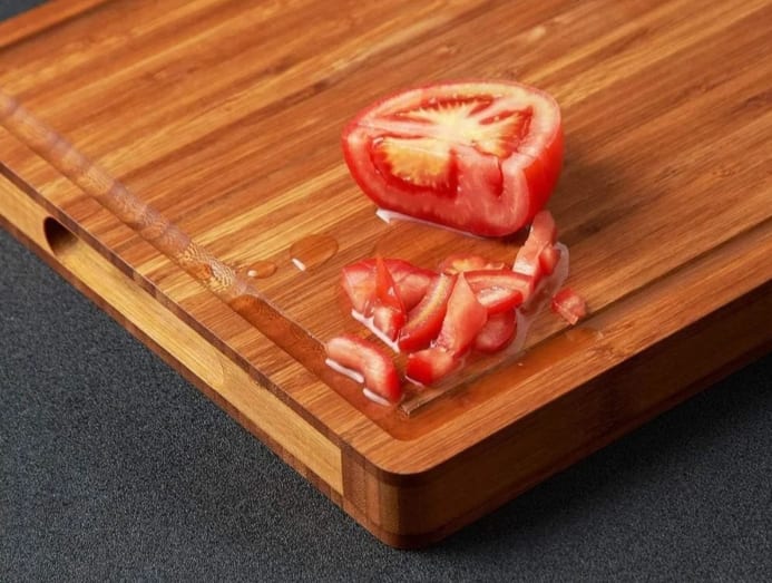 This bamboo board is a good replacement for plastic chopping boards. It’s also stronger than regular wood and less porous than hardwoods – reducing the risk of collecting bacteria. Measuring 40.6cm x 27.9cm, this chopping board features hidden side handles that make it easy-to-hold and deep grooves to collect juice. It also doubles as a sleek charcuterie board for serving cheese and wine.
