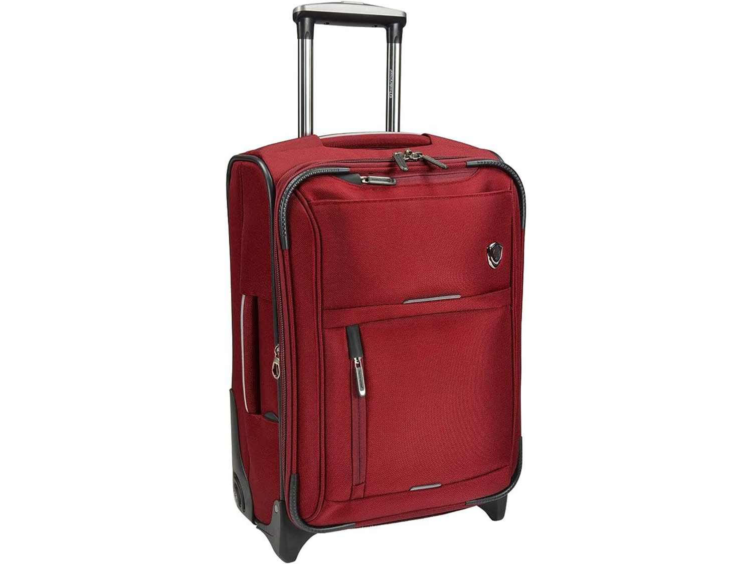 If the only dealbreaker you’ve had with a hardside is the lack of a front pocket, the 19-inch Rockland bag addresses this concern by offering a fully padded front pocket that accommodates a laptop of up to 15 inches. Crafted from ultra-lightweight, impact-resistant ABS material, the Rockland Titan is a commendable option, available in three hues and endowed with four spinner wheels.