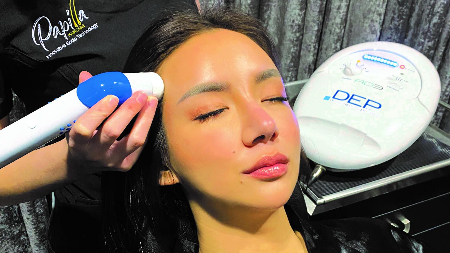 Expert care could be needed if daily washing doesn’t do a thorough enough job. Mr Tang recounted an experience with a client whose profession required the heavy use of hairstyling products. When she visited Papilla Haircare, a scalp scan revealed hair follicles that were clogged by scalp build-up, which contributed to her hair loss woes. She was recommended the brand’s proprietary scalpelectroporation (S.E.P) Activator treatment, developed by dermatologists in South Korea.