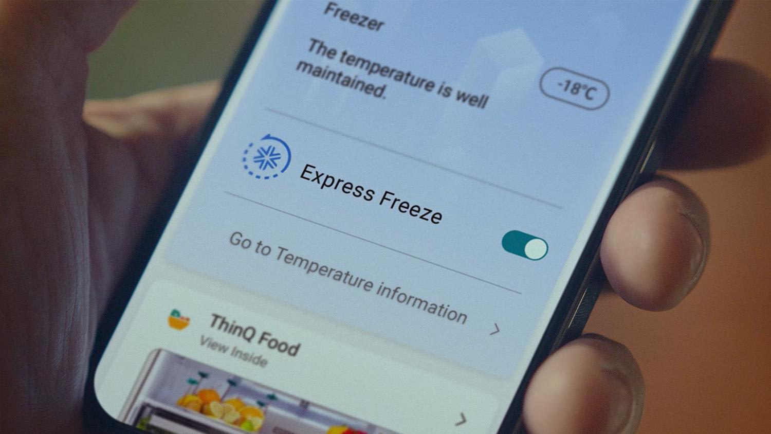 With Content Mirroring, content on your phone can be cast onto the TV, letting you watch those YouTube tutorials easily as you work out in the living room, or allowing more to join in on a video call. Need to whip up a frozen dessert or churn ice for a party in a jiffy? Tap into Express Freeze to lower your freezer temperature pronto.