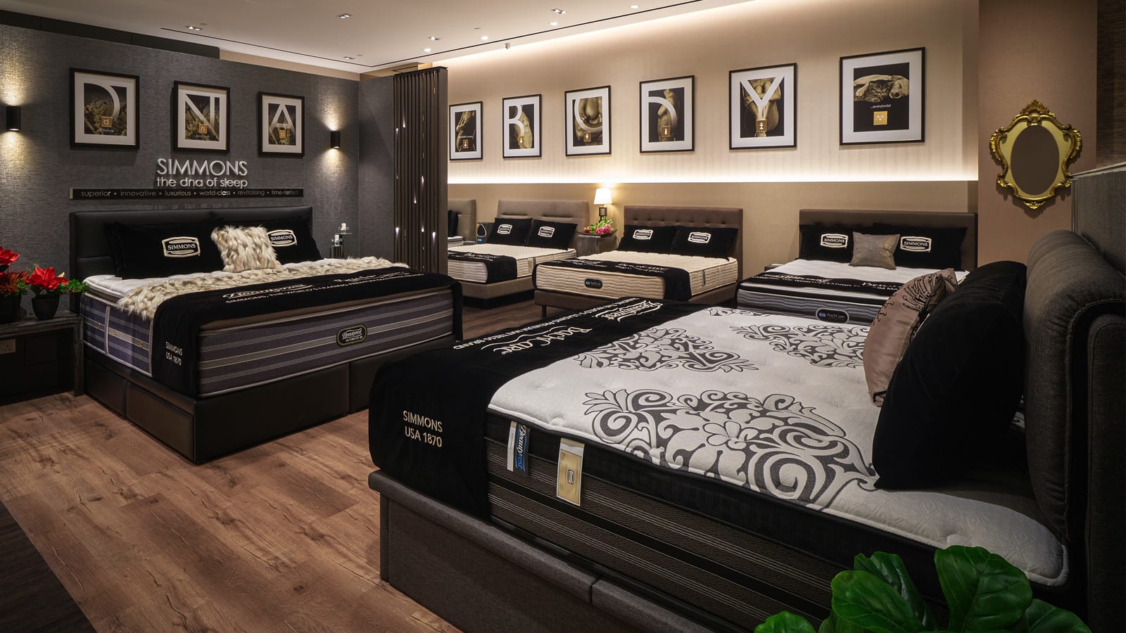 Step in the showroom and find an artful display of images on the left. You might think it’s a photography showcase, but overlaid on these images is the word “body”, which speaks to Simmons’ design that has been engineered for every type of body shape and size. Whether it’s for the elderly or the pregnant, the thought that goes into every mattress grants support and comfort for everyone.