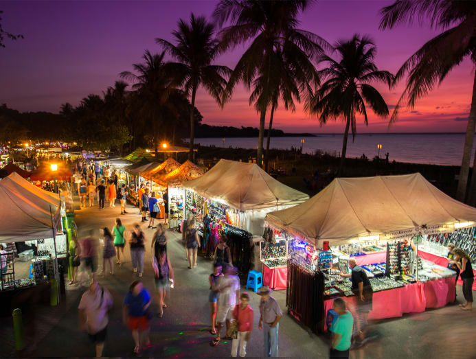 Start your journey in tropical Darwin and wander its breezy waterfront markets filled with multicultural eats and vibrant finds. Tip: The popular Mindil Beach Sunset Market is a wonderful spot for catching live music and sunsets.