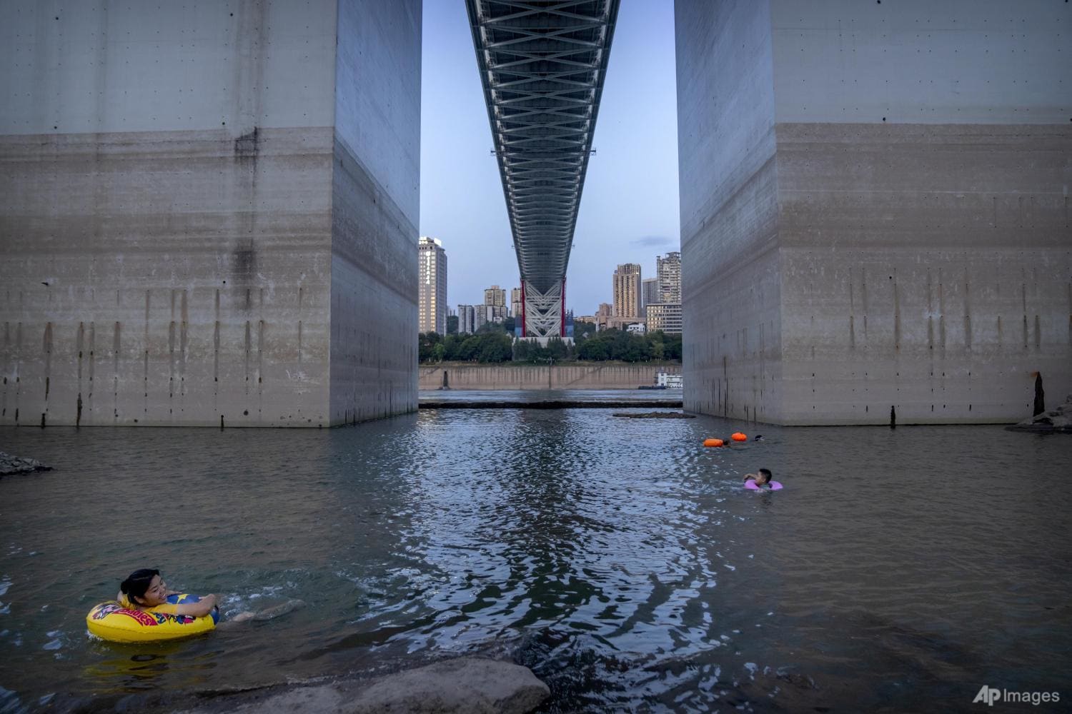 And along the Yangtze and its tributary Jialing, people have been taking the opportunity to explore newly exposed riverbeds and swim in shallow waters.