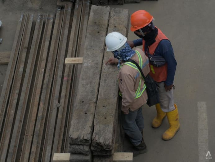 An MRT Jakarta construction site where workers discovered colonial-era tram tracks dating back to the 19th Century. (Photo: CNA/Nivell Rayda)