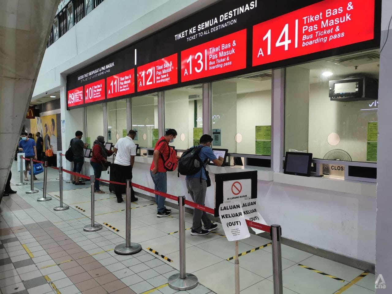 Meanwhile, Johor Bahru’s Larkin bus terminal was bustling with activity on Monday morning. Travellers with bags and haversacks were queueing at ticket counters in the dozens and there were lines of taxis waiting outside for customers.