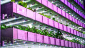 There are five growing racks that reach up to 18 feet. Each rack is planted with seven layers of vegetables.