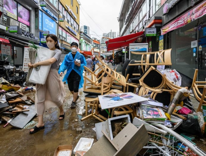 South Korea was also pounded by heavy rain earlier this month, causing widespread flooding and knocking out power in parts of the capital Seoul.