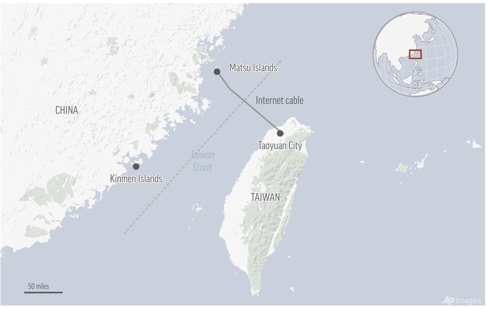For connecting to the outside world, the Matsu Islands' 14,000 residents rely on two submarine Internet cables leading to Taiwan's main island.