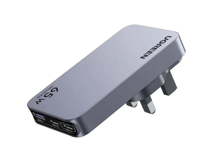 This 65W charger features two USB-C and one USB-A port. Its slim profile means it fits into tight spaces. It comes with US, UK and EU plugs – though it doesn’t include a plug for Australia and New Zealand.
