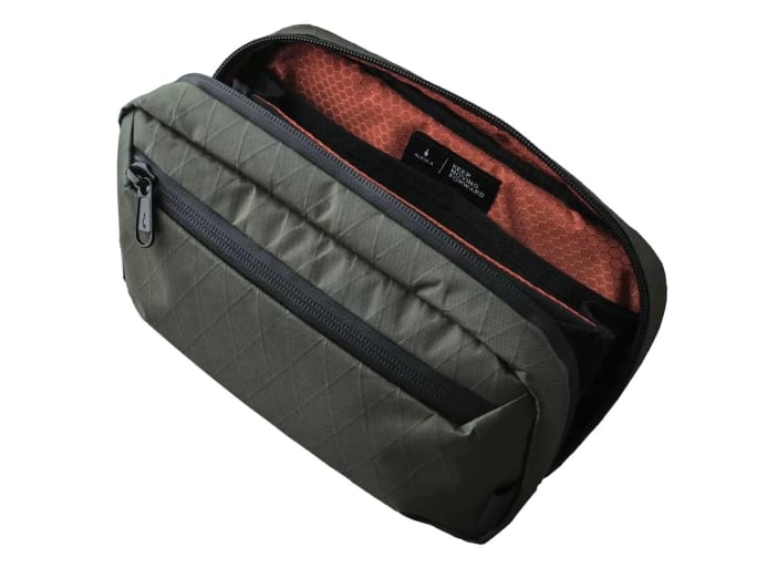 EDC stalwarts Bellroy have designed this pouch for larger accessories. It features smooth-action zips, magnetic slip pockets and is made from recycled woven fabric. It also opens flat for easy access and has stretch mesh pockets for odd-shaped items.