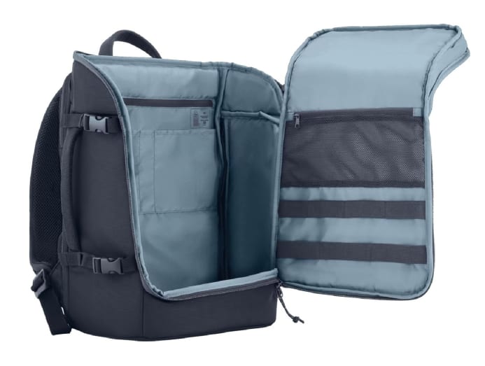 This spacious 40L backpack features three compartments: A quick-access main compartment, a tech storage area and a front pocket. It fits clothes, toiletries, a 17-inch laptop, tablet and travel accessories – everything you need for a short trip. The main compartment can be accessed through the front pocket or opened flat like a suitcase for easy packing and organisation. It also has a spacious tech compartment that fits a 17-inch laptop and a 12.9-inch iPad and padded back panel for extra comfort.