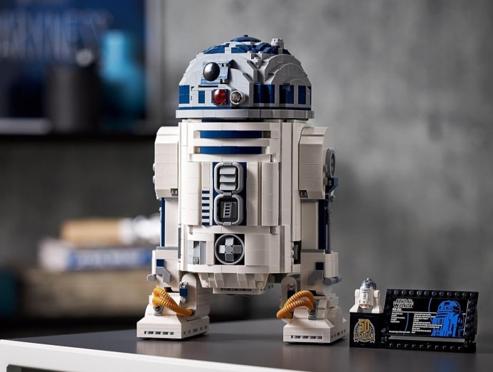 This 2,314-piece set has been marked as “retiring soon” on the Lego website. It includes several working features – a rotating head, extendable front hatches and lightsaber hidden in a secret compartment. The 31cm-tall model has a compact yet commanding presence on any shelf. Its display stand includes an information plaque and Lego Star Wars R2-D2 figure.