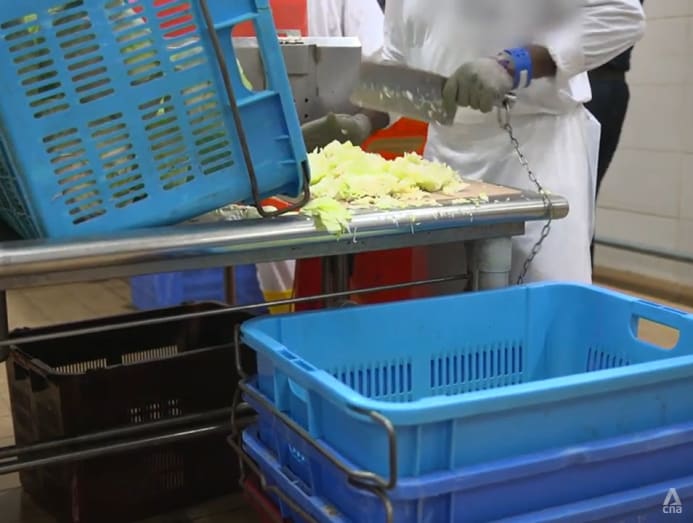 In the central kitchen for Changi Prison’s cluster B, for example, lunch and dinner for officers, volunteers and inmates — about 7,000 to 8,000 meals per day — are prepared by inmate workers, guided by chefs from the Singapore Airport Terminal Services.
