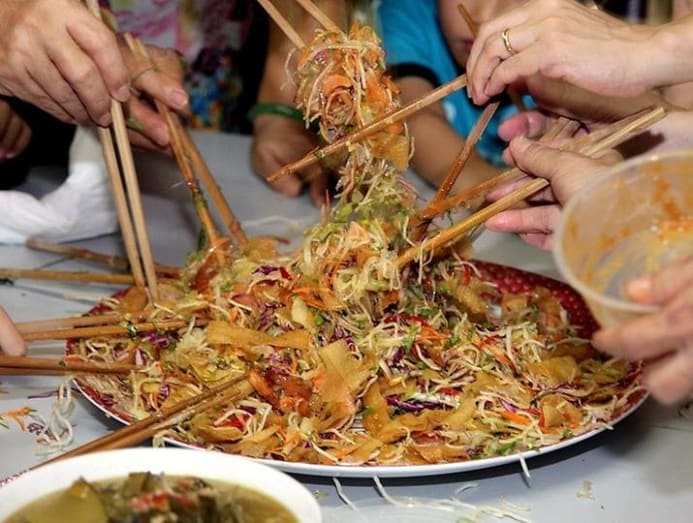 File photo of diners tossing "yusheng" during Chinese New Year. (Photo: Wikimedia Commons/Jan)