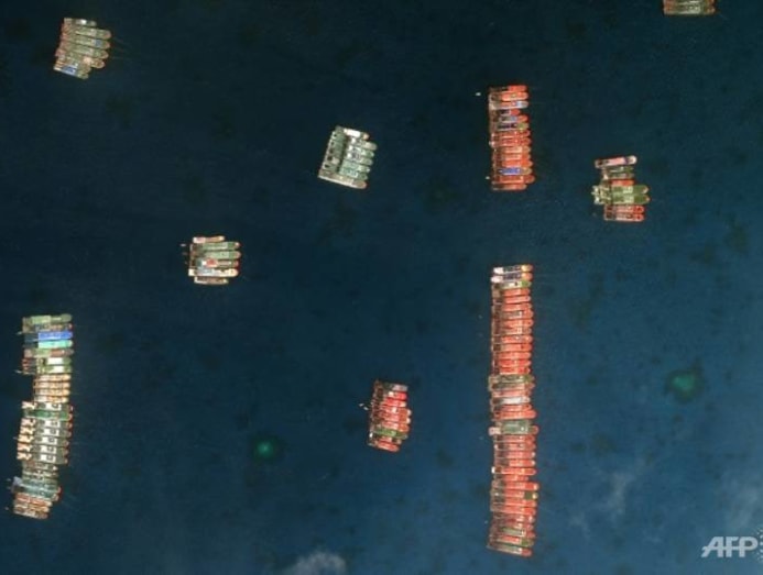 More than two hundred ships were first spotted on Mar 7, 2021, at Whitsun Reef, about 320km west of Palawan Island in the South China Sea. (File photo: AFP/Handout) Over two hundred ships were first spotted on March 7 at Whitsun Reef, around 320 kilometres (175 nautical miles) west of Palawan Island in the South China Sea AFP/Handout