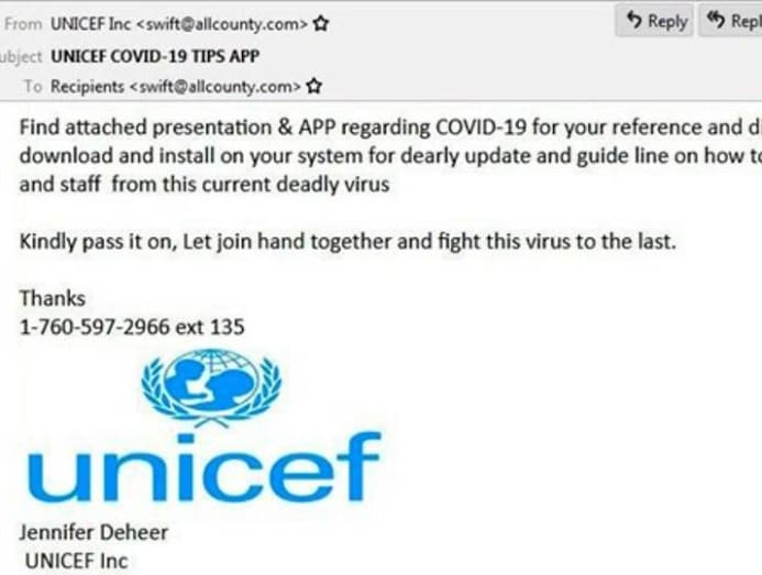 Scammers too are leveraging philanthropy efforts. In the early days of the pandemic, just weeks before the circuit breaker was introduced, we detected a phishing campaign disguised as a set of safety recommendations from the UNICEF.