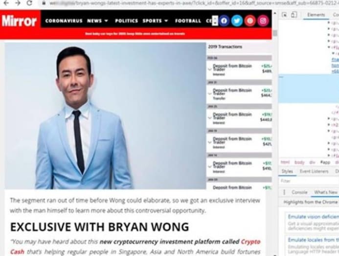 Websites built for this purpose featured made-up interviews and fabricated comments attributed to local celebrities, like Bryan Wong.