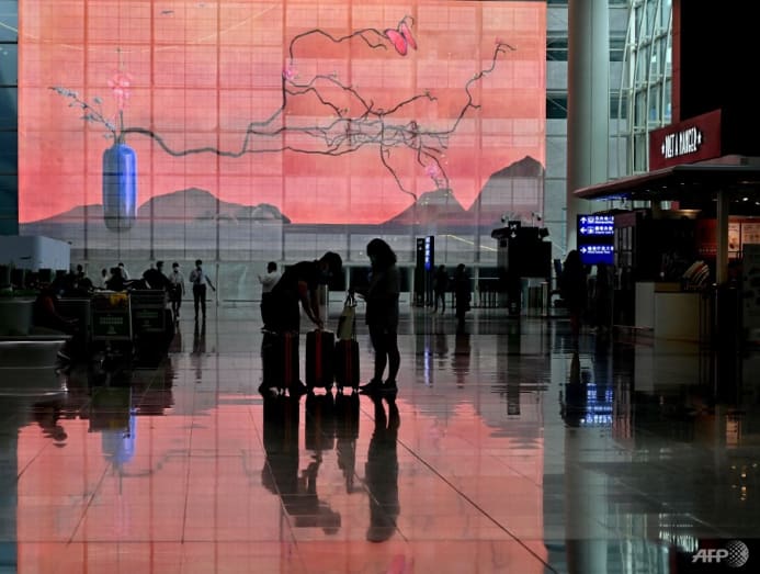 A woman arrives at Hong Kong International Airport before making her way to hotel quarantine on Sept 23, 2022, a few days before measures were relaxed. (Photo: AFP/ISAAC LAWRENCE)