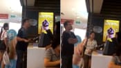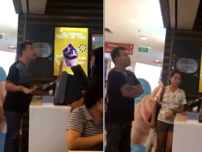 A man, who was dressed in a black T-shirt, was filmed shouting at a McDonald's staff member in Hougang. (Screenshot: Facebook/Kyros Lim)