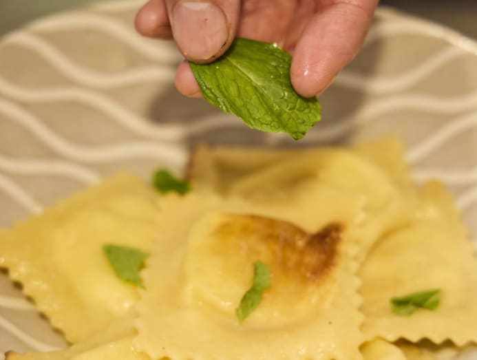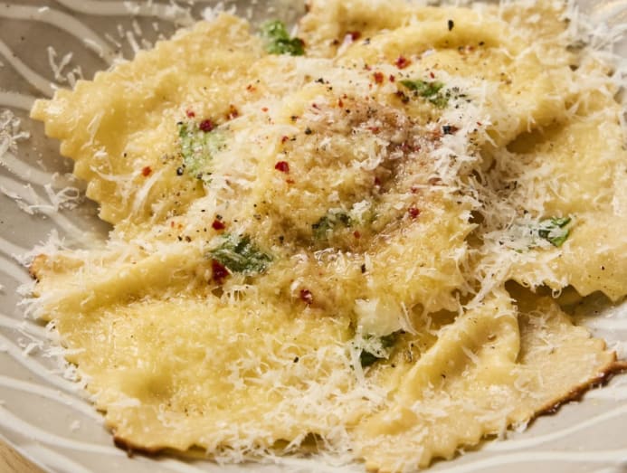 Made with supple egg dough, these tender ravioli have a slight chew and edges that catch a gentle golden crust from the quick pan-fry, adding a homely touch. Tossed in nutty French brown butter, the dish is surprisingly light, its richness balanced by the natural sweetness of pear and the creamy, mellow ricotta filling.
