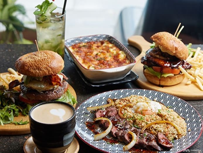 Prices start from S$12 for a har cheong gai wings appetiser, and average at S$16 to S$19 for a main dish like seared mentaiko salmon burger (S$19), Parma ham pizza (S$16), fish and chips ($16) and rib eye steak wrap ($18).