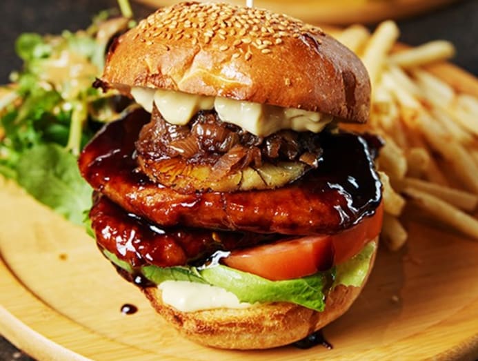 Portions here are generous, like this hearty zi char-inspired coffee pork ribs burger draped in a sticky house-made espresso glaze. The succulent boneless pork chops are stacked with caramelised onions, pineapple and toasted buns, and served with fries.