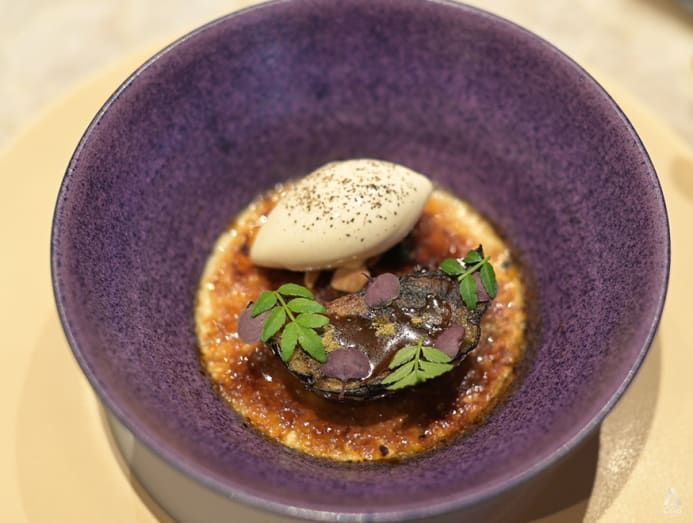 The masterful piece de resistance is the Nasu Brulee, a dish of roasted eggplant custard sprinkled with sugar and torched, topped with eggplant seared with binchotan, as well as miso-soya ice cream.