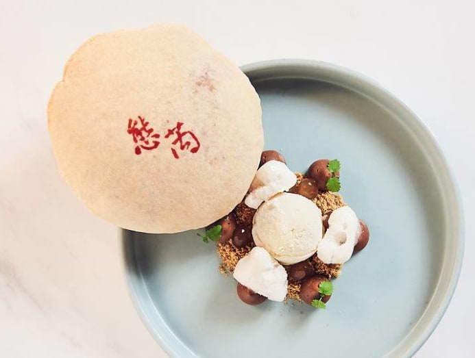 In one of the two-Michelin-starred restaurant’s signature sweets, Pineapple Cake, for instance, the Singapore-born chef added star anise to Taiwan pineapple marmalade and cooked it in the same way she would make pineapple tarts back home.