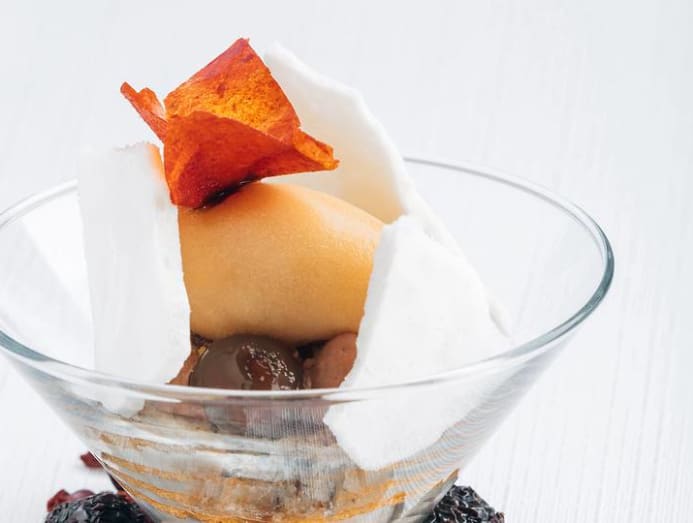 Lai’s other creations are familiar yet inspiring for those who grew up in Asia: Pong Pia, for example, recalls the flaky molasses-filled pastry but features dark brown sugar, Madong chocolate cremeux and sesame oil ice cream in a sophisticated new take.