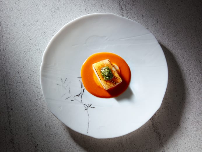 And, because “I’m obsessed with salted egg”, Chipiron, a dish of grilled cuttlefish with chimichurri, floats on a sauce of 'nduja and salted egg that Arevalo has cured himself. “First, I put spices in the yolk to regulate it, and sugar. Then I stop the process before it becomes too dry, controlling the texture of the yolk so it emulsifies well. I’m a salted egg nerd,” he proclaimed with pride.