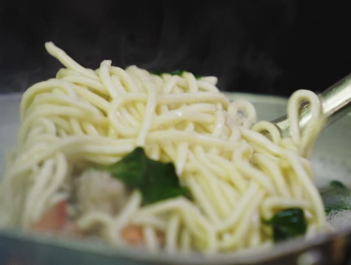 China Whampoa Home Made Noodles’s ban mian is made with manic cai or sayur manis. (Photo: Denise Tan)