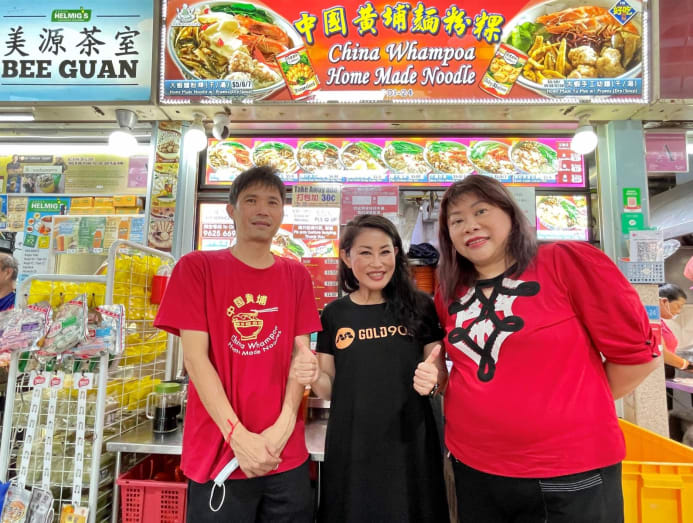 From left: China Whampoa Home Made Noodles stall owner Mr Ng, Mediacorp Gold 905 DJ Denise Tan, and private hire driver Alice Kee. (Photo: Denise Tan)