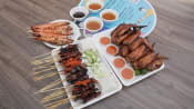 At Wild Coco, the extensive no pork, no lard, no MSG menu is built around their signature sets, all consisting of coconut jasmine rice, sunny side up egg, Japanese cucumber, house-made sambal, ikan bilis and salted roasted peanuts.