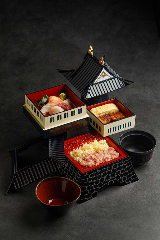 There is also a quirky Kai Kai castle bento, served in a multi-tiered bento box shaped like a Japanese castle. It comes with rice and toppings like mixed sashimi, chopped tuna belly, tempura, flying fish roe and salmon roe.