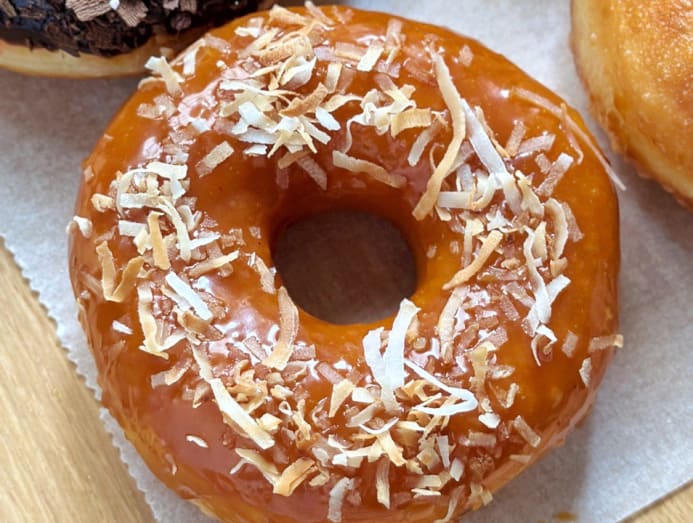 Creamier fans may recognise this ice cream flavour at its shops, and it now comes in a doughnut form. The ring doughnut is draped in a caramelly palm sugar glaze spiked with a bit of sea salt and topped with crunchy toasted coconut flakes. We like this moreish sweet-salty combination with a fun crunch.