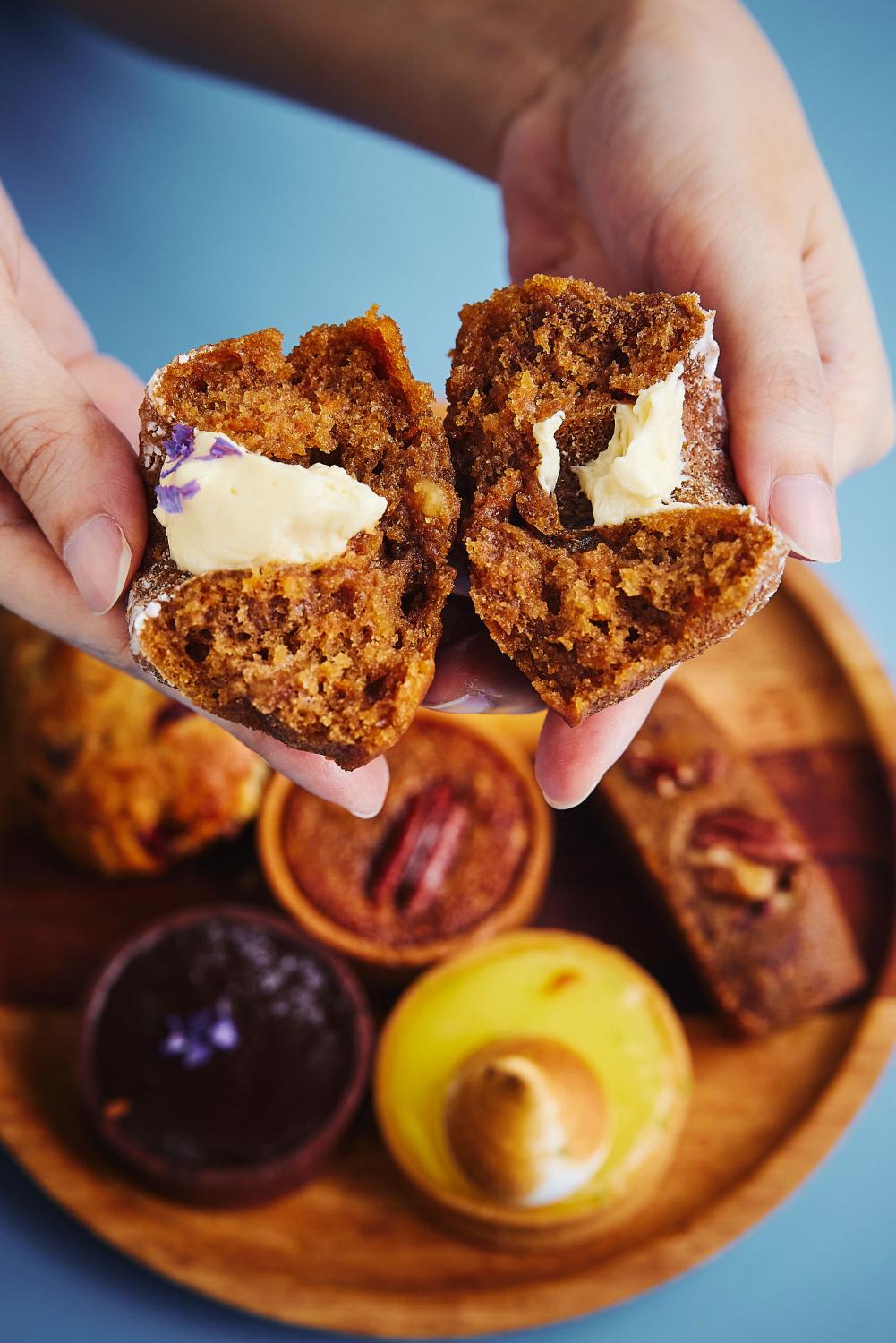Shaped like a mini bundt, this moist and not-too-dense carrot cake is generously studded with chopped walnuts and finished with smooth cream cheese frosting. Drop by before the month ends to try this seasonal item.