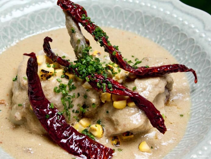 An elevated take on a lesser-known Malay creation. This dish features succulent grilled chicken simmered in coconut milk infused with aromatic spices like ginger. Charred corn adds a smoky sweetness to the velvety sauce, an excellent final touch.