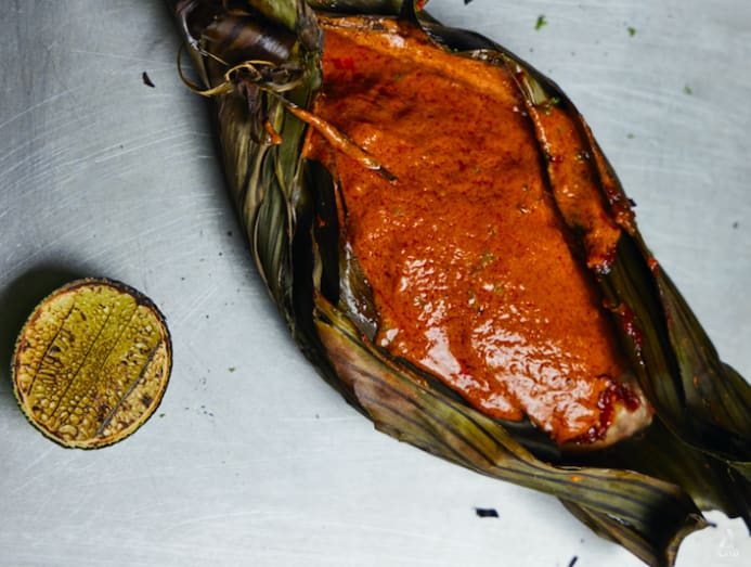 The style is inspired by Asyraffie's travels through Malaysia and Thailand, during which "I noticed that grilling is typically done especially in the kampung areas. At Kerabu, we use coconut husk in the grill for an added smoky flavour. We also use banana leaf to wrap our delicate proteins such as our pomfret fish, making the dish fragrant".