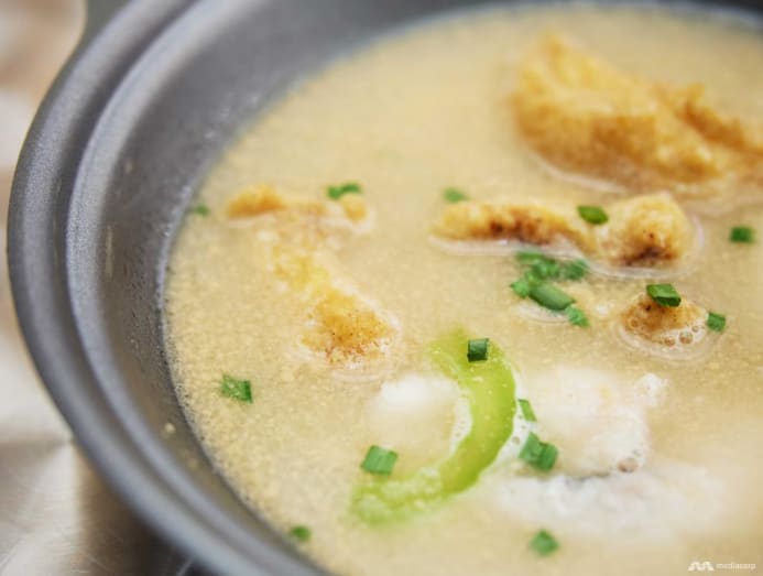 If you’re expecting typical Teochew-style fish soup here, be prepared for something totally different. Ernest Ang makes his soup with a mixture of ground nuts and peanuts to cut the fishy flavour, he said. At first sip, his rendition tastes a lot more like a slightly diluted peanut soup. It’s nutty, and somewhat comforting, but not at all like how you’d expect fish soup to taste.