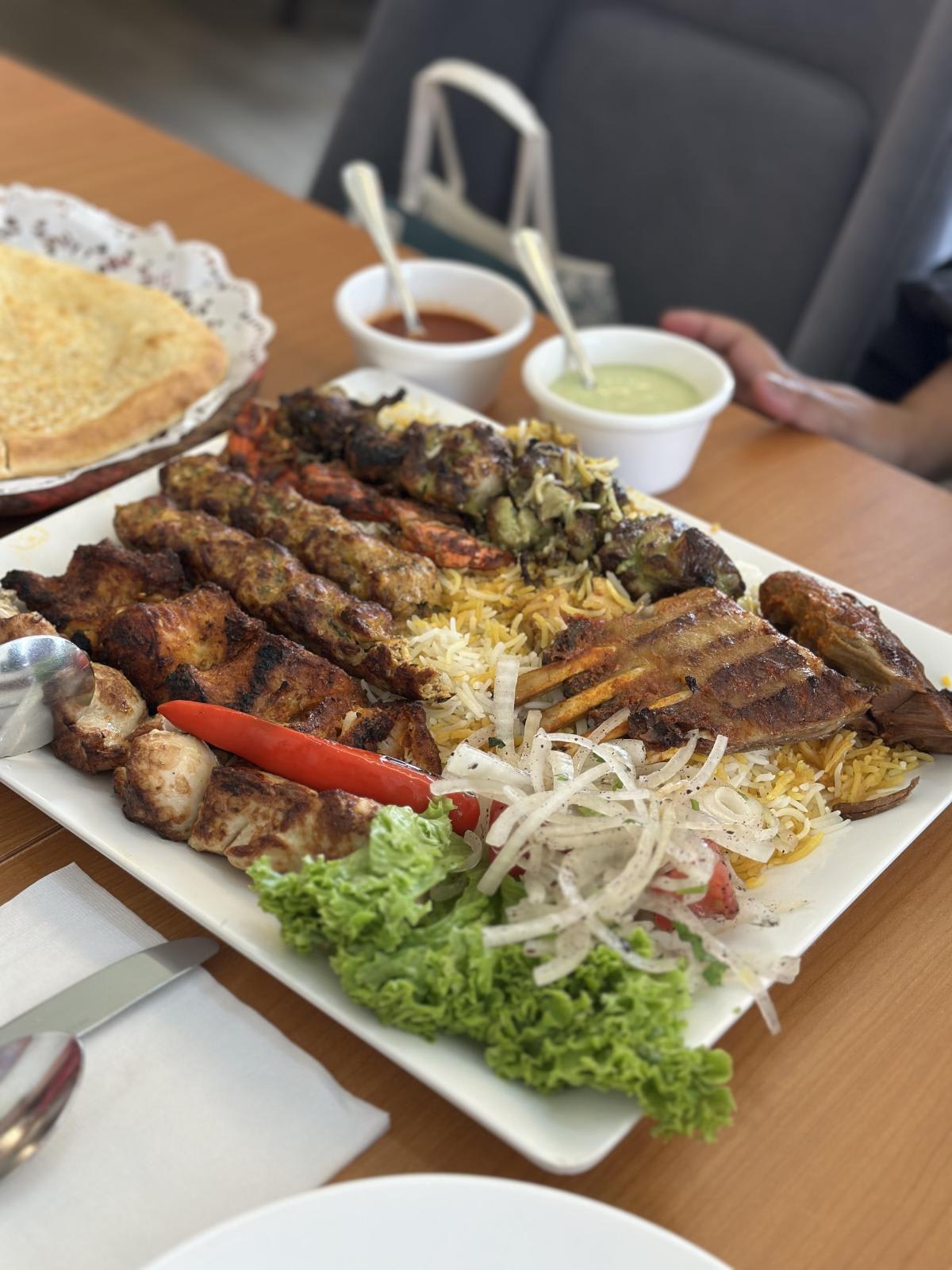 We ordered the half barbecue platter, a heaving spread of biryani, lamb ribs, prawns, reshmi kebab, Afghan chicken boti, malai tikka and fish tikka. Each tasted clearly of their own marinades – some redolent of coriander and cumin, others saturated with the flavour of onions and green chillies. All were beautifully succulent, tender, and smoky from the breath of the grill.